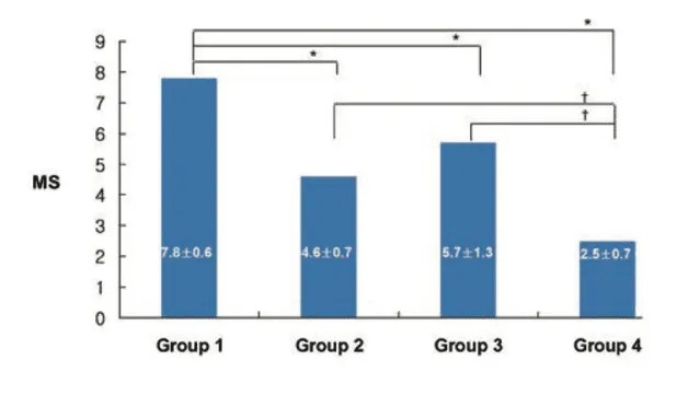 For histological analysis, the femoral and tibial condyles were fixed in 10% neutral buffered formalin, decalcified with 20% EDTA, embedded in paraffin, and sectioned into 5-μm thick frontal slices. These slices were stained with hematoxylin and eosin, focusing on the lateral portion of the femoral condyle. If initial staining was insufficient, the sample was sectioned again to obtain a better visual field of cartilage structure. Histopathological evaluation used a modified Mankin scoring system. This system rated cartilage structural integrity from 0, defined as normal to 6, defined as complete disorganization, and assessed cellularity from 0, defined as normal, to 3, defined as hypocellularity, for a total possible score of 0 to 9. Higher scores indicated more severe degeneration [1].