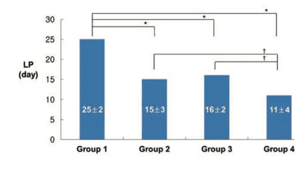 Figure 3: Changes in the lameness period amongst the four experimental treatment groups.